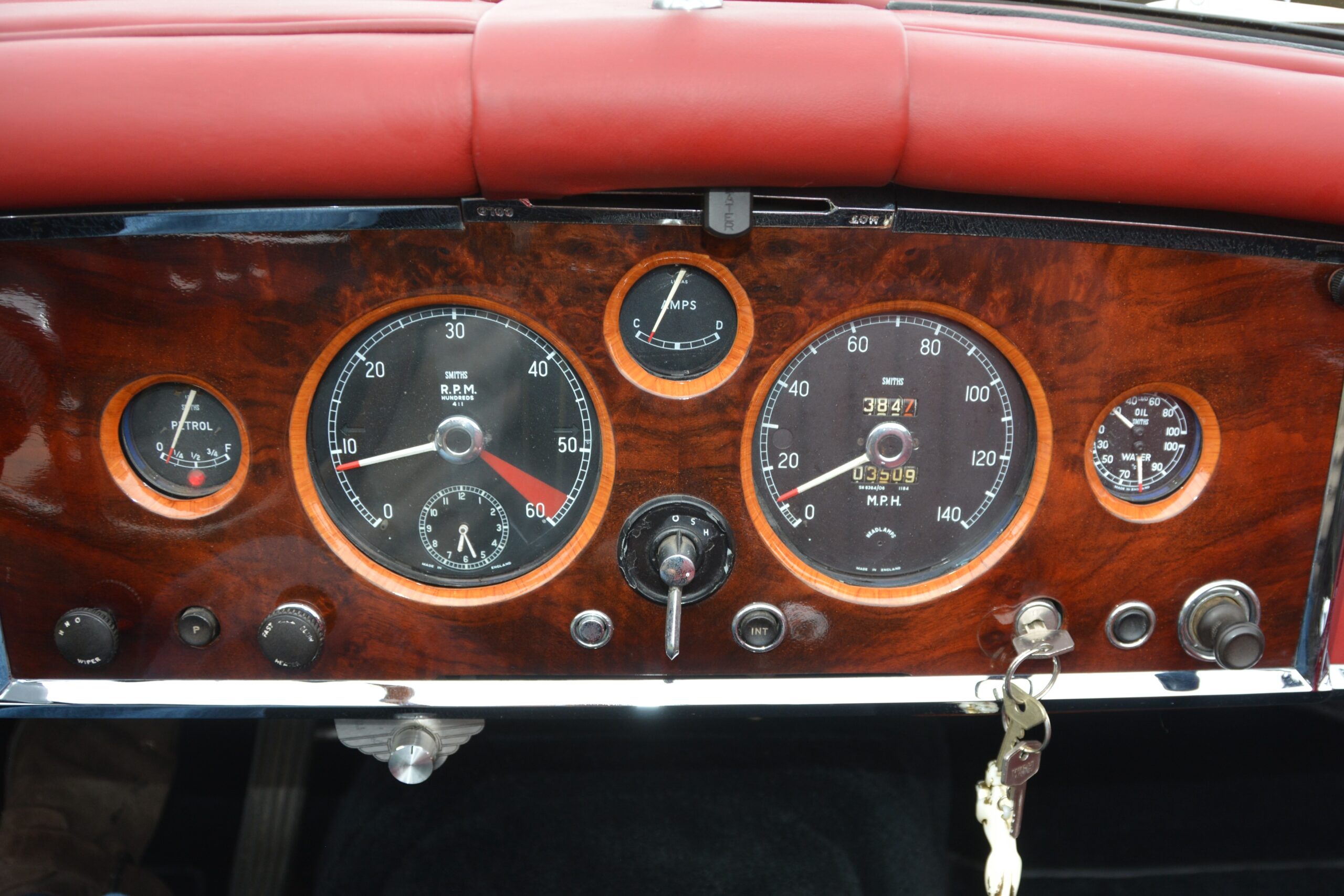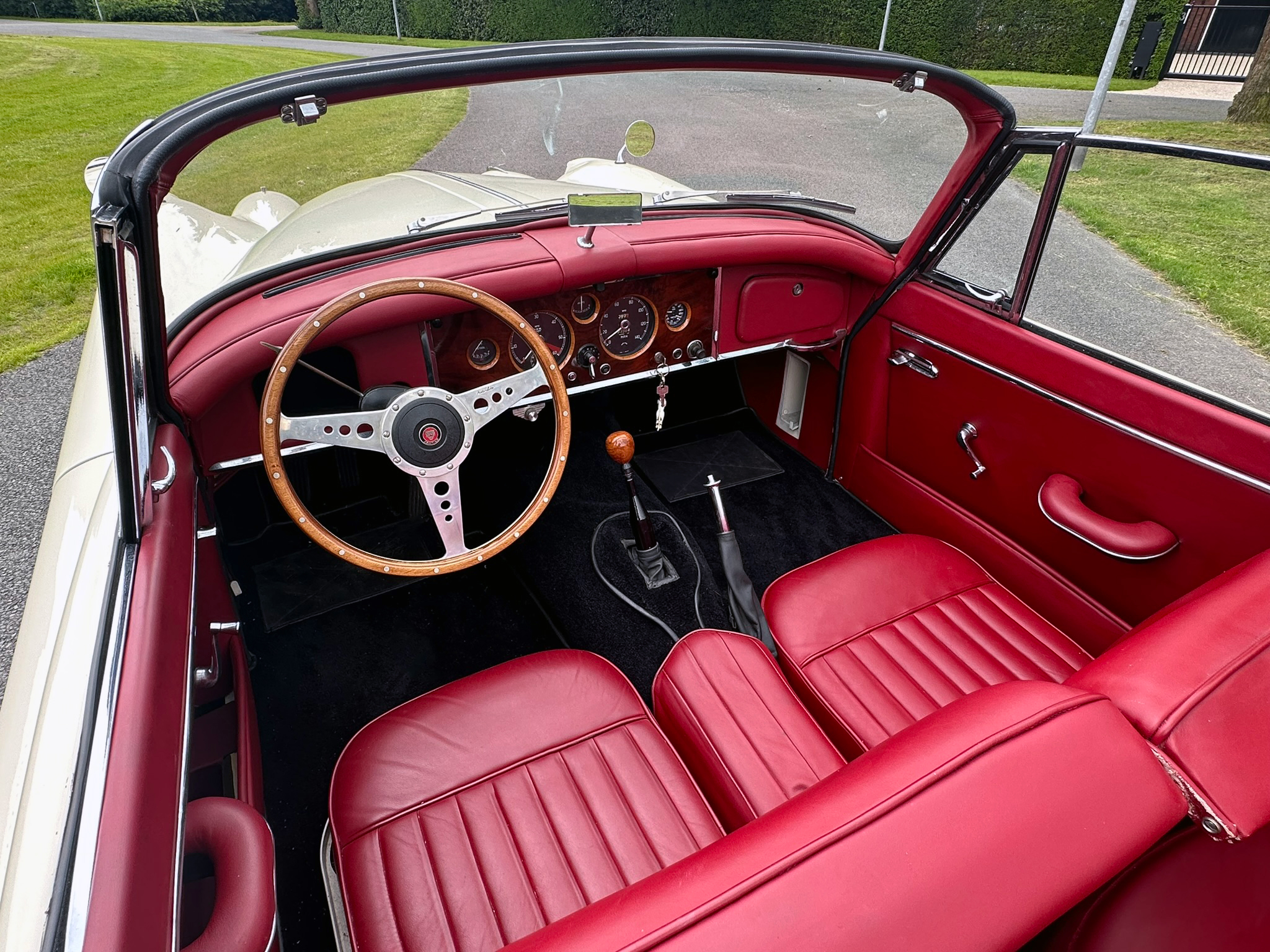 - Rijervaring: De XK150 geldt als de meest verfijnde evolutie van de XK-serie. Dankzij de schijfremmen rondom en de technische upgrades rijdt deze Jaguar opvallend modern en direct. De motor is alert, krachtig en levert het karakteristieke Jaguar-geluid. Met slechts 3.509 mijl op de teller sinds de opbouw, voelt de techniek nog uiterst fris aan.