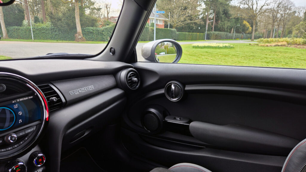 That’s why this particular example is so interesting. From the first owner, delivered and maintained by BMW and Mini dealer Van Poelgeest, with a fully documented history, including the most recent service at 31,433 km in November 2025. Now, at 31,737 km, number 0494 is in absolute top condition—where everything comes together, yet still allows you to experience it as it should, without compromising its future appeal. Never on the track, no winter use, and even the launch control has remained untouched. Equipped with extra carbon, protective film on vulnerable areas, and a high-quality, subtly integrated €6,000 audio system from Brian Custom Audio, which also supplies Bugatti. The presence of air conditioning also makes it suitable for longer drives. You could order this car without AC—nice for the story, less for the experience. Now you can enjoy amazing sound from the speakers while cruising at 19 degrees on the highway toward your favorite mountain pass. And even when driving there, the AC is a welcome companion. A tangible reminder that you’re not just dealing with a fast hatchback, but a deliberately built driver’s car.
